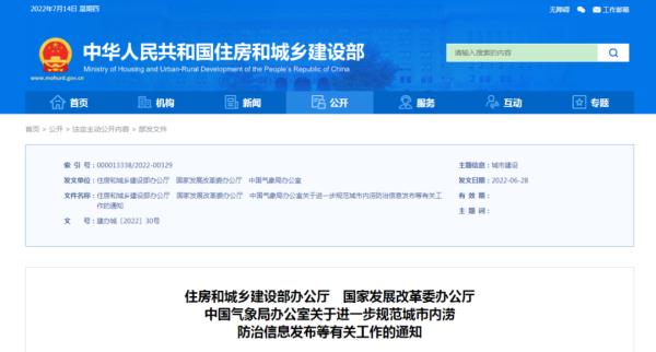 近日住房和城鄉(xiāng)建設(shè)部、國家發(fā)展改革委、中國氣象局發(fā)布關(guān)于進(jìn)一步規(guī)范城市內(nèi)澇防治信息發(fā)布等有關(guān)工作的通知。