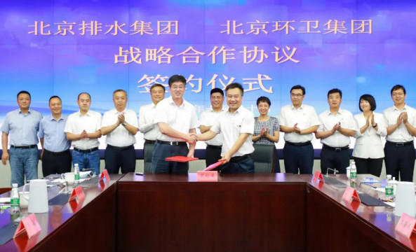 7月20日,北京排水集團與北京環(huán)衛(wèi)集團簽署戰(zhàn)略合作協(xié)議。北京環(huán)衛(wèi)集團黨委書記、董事長高蹤陽,黨委副書記、總經(jīng)理何亮,北京排水集團黨委書記、董事長張建新,黨委副書記、總經(jīng)理張榮兵,副總經(jīng)理鄺諾參加簽約儀式。