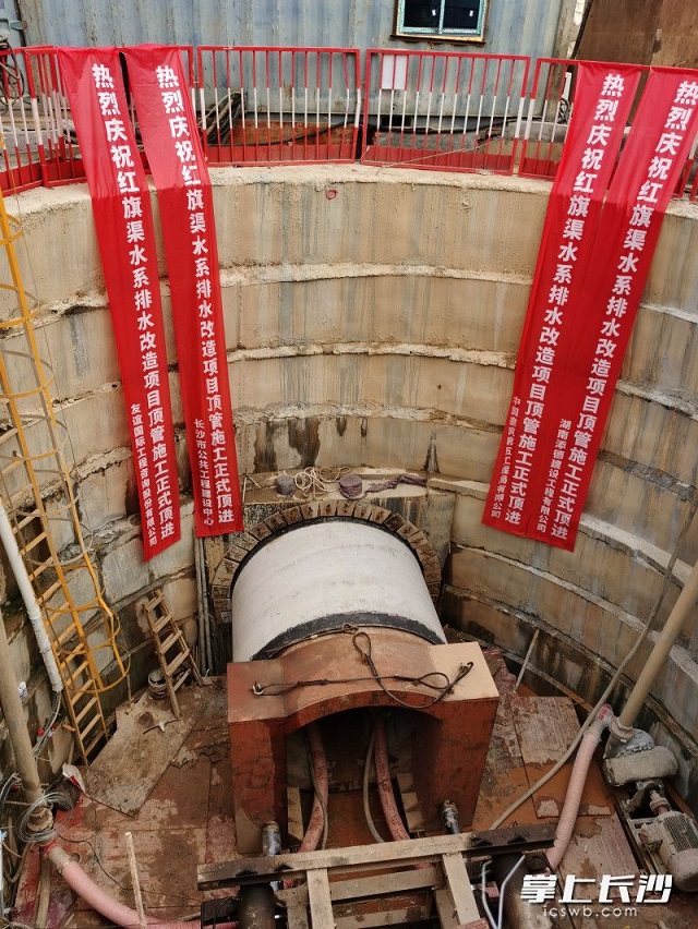 9月7日,紅旗渠水系排水改造項目正式實現頂管始發,正式進入主體施工階段。均為長沙晚報全媒體記者 陳煥明 通訊員 劉志強 攝影報道