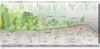 董珂等人在獲獎作品中采用的是植物修復的技術修復“棕地”土壤,即利用高效累積植物的生長活動,將土壤污染物吸收轉移進入植物體,然后對植物進行收割和處理,從而實現(xiàn)修復污染土壤的目的。而這種“修復”,則體現(xiàn)了“城市雙修”的理念。