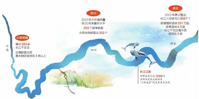 “2022年,湖北省繼續(xù)把修復(fù)長江生態(tài)環(huán)境擺在壓倒性位置,協(xié)同推進(jìn)降碳、減污、擴(kuò)綠、增長。長江保護(hù)修復(fù)提檔升級。”亢德芝列出數(shù)據(jù),深入實(shí)施長江高水平保護(hù)十大攻堅(jiān)提升行動(dòng),累計(jì)整治長江入河排污口9067個(gè),新增植樹造林231萬畝、濕地修復(fù)4萬畝,長江干流出境水質(zhì)保持在Ⅱ類,“江豚逐浪”的美景再次呈現(xiàn)在世人面前。