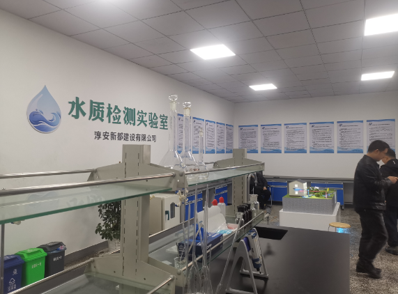該治水客廳建筑面積近200平方米,一樓為水質檢測實驗室,利用自動化監測系統、微型水質監測站等,能對PH、COD、氨氮、總磷、總氮、SS等指標進行實時檢測。今年以來共檢測水樣228個,分析水質數據1600余個,準確、及時、全面地反映水質現狀及發展趨勢,對污水出水水質實現自我監督的同時根據水質檢測結果對農污終端進行針對性調試,做到有的放矢,確保水質達標排放,助力武強溪流域水環境保護。室內精心設計了全市首個農村污水處理沙盤,全方位動態展示污水來源、處理工藝流程和尾水的循環利用,讓參觀者直觀地感受到當地農村污水處理流程。