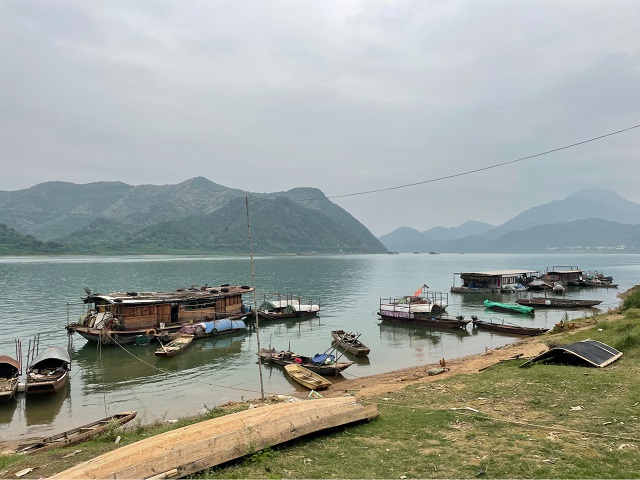 西江上,運輸船只來來往往。岸邊,幾只雞鴨奔跑追逐搶食地上的幾條小魚,十幾只漁船安靜地在江邊停泊。一個小伙子站在岸邊甩動漁竿正在釣魚。當記者問及是否知道這里要建取水泵站時,他回答說,村里都知道這里要建泵站,但具體什么時候還不太清楚。