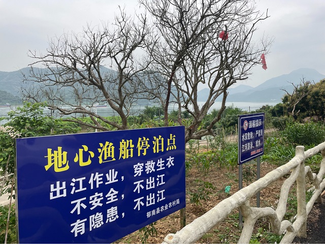 順著坡路走進村子,公告欄里貼著《環(huán)北部灣廣東水資源配置工程(郁南段)建設征收地心村委員會一村村民小組土地公示》,由郁南縣建城鎮(zhèn)人民政府蓋章,日期為2023年2月23日。公告欄對面,懸掛著一條紅色長條幅,上面的黃色大字格外顯眼:禁漁時間:2023年3月1日0時至6月30日24時。