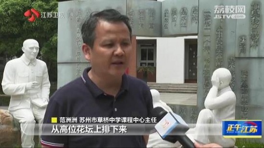 蘇州市草橋中學(xué)課程中心主任范洲洲:“通過雨水管道從高位花壇上排下來,一部分排到地下的管網(wǎng),還有一部分留在了罐子里,作為植物的灌溉需求。”