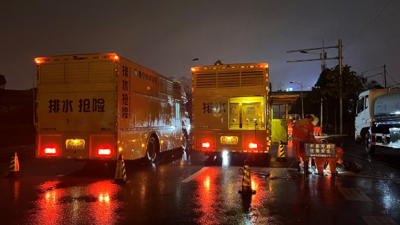南寧市排水公司利用應急搶險車及時對路面積水進行處置
