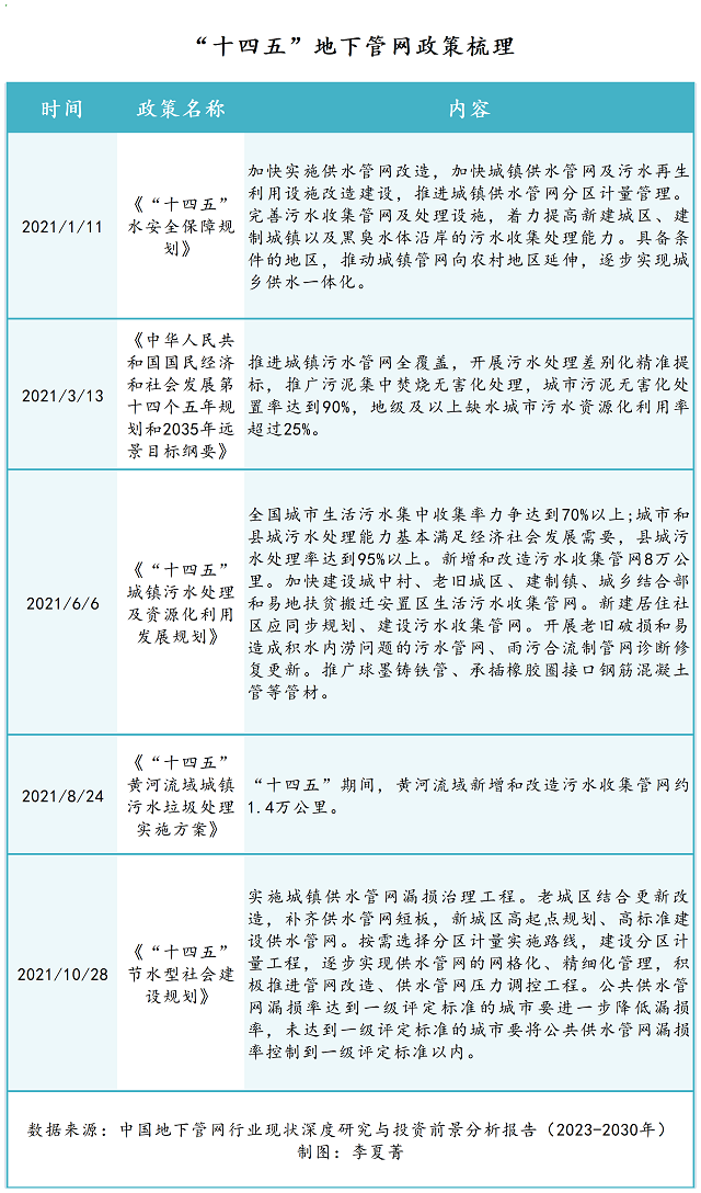 進入“十四五”以來,“地下管網建設”受到空前重視,從國家到地方均制定了相應規(guī)劃,同時明確目標并在財政上予以支撐。可以說,管網攻堅戰(zhàn)正式啟動。