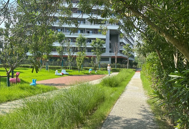 項目還采用分散設置的下凹綠地、雨水花園,消納周邊雨水,并應用淺層調蓄設施,構建雨水快速導入、自然凈化、復合利用的海綿系統(tǒng)。