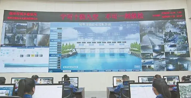 連日來(lái),福州市城區(qū)水系聯(lián)排聯(lián)調(diào)中心的指揮大廳里,工作人員緊盯城區(qū)水系科學(xué)調(diào)度系統(tǒng),實(shí)時(shí)調(diào)度。