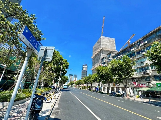 上午十點,記者來到國和路三門路看到,嶄新的柏油路上車流穿梭,百米長的路段上窨井蓋整齊排布。馬路兩旁綠化鋪設井然有序,街區整體面貌煥然一新。