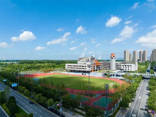 金陵中學新校區位于中新南京生態科技島南部,已于2023年開學,學校總占地面積約為3.87萬平方米。江心洲校區與本部采用一校兩址辦學、一體化管理,構成完整的高中編制和國際部編制,通過集團化辦學孵化引領全島基礎教育不斷發展壯大。