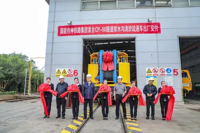 9月11日上午10時,經過項目組一年多來夜以繼日的奮戰,國內首臺QY-50隧道排水溝清淤車正式出廠,即將在包神鐵路投入使用。