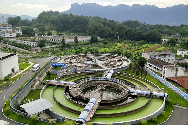 湖北宜昌,在宜昌市夷陵區太平溪鎮許家沖村,污水處理廠正在對太平溪集鎮及周邊收集來的污水進行凈化處理。