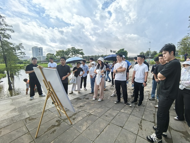 第一階段活動為現(xiàn)場調(diào)研。參加活動的人員現(xiàn)場觀摩了光明區(qū)典范海綿城市建設(shè)項目——樓村濕地公園。區(qū)海綿辦工作人員介紹了光明區(qū)海綿城市建設(shè)歷程,并結(jié)合樓村濕地公園介紹光明區(qū)如何從場地豎向、地表組織徑流、雨洪調(diào)蓄等方面打造精品海綿城市項目。區(qū)節(jié)水辦工作人員介紹了近年來光明區(qū)節(jié)水與再生水工作的舉措和成效,以樓村濕地公園成功創(chuàng)建節(jié)水型公園和再生水取水樣板站為案例,介紹公園再生水處理流程、取水方式及再生水用于園區(qū)綠化澆灑等情況。區(qū)環(huán)境水務(wù)有限公司工作人員結(jié)合水情教育基地,詳細(xì)介紹了光明區(qū)水務(wù)工作各板塊發(fā)展進(jìn)程、近年來取得的成就及面臨的挑戰(zhàn),并強(qiáng)調(diào)節(jié)水與水資源保護(hù)的重要性。