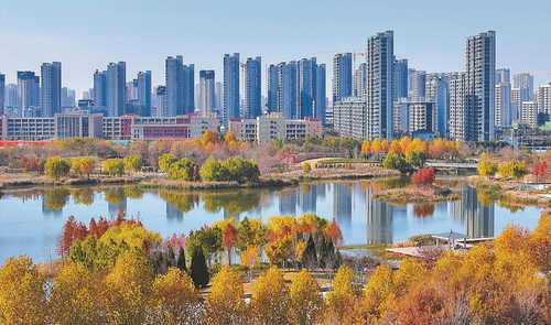 安徽省亳州市不斷推進(jìn)生態(tài)城市建設(shè),圖為高新區(qū)鳳尾公園色彩斑斕,景色如畫。