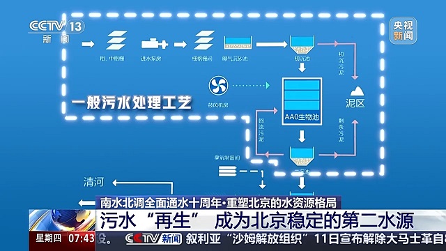 污水“再生” 成為北京穩定的第二水源 在用好每一滴南水的同時,北京還在污水處理上推動技術創新,讓原本處理后排走的生活污水,變成可循環利用的“再生水”。