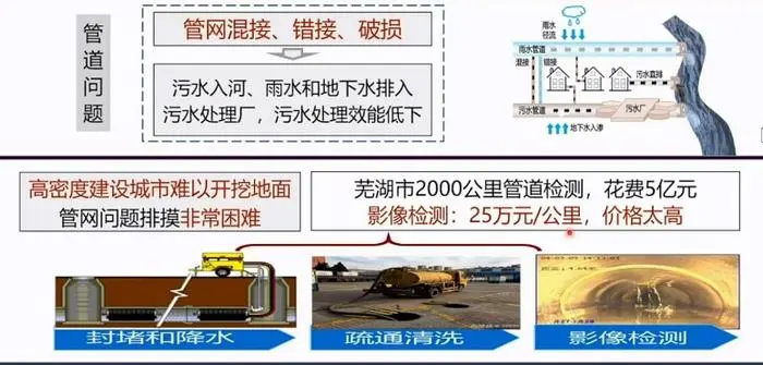 “中國城市水環境治理進入了攻堅克難的關鍵時期。長期以來,我國城鎮環境基礎設施建設嚴重滯后于城鎮化進程,導致城鎮排水管網混亂,這是中國城鎮水環境改善一道繞不過的坎。只有切實解決好管網問題,中國城鎮水環境治理才能見到實效?!毙熳嫘耪f。