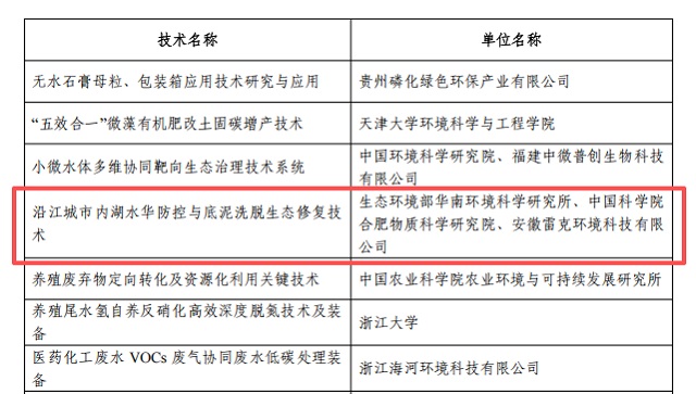 長江生態(tài)環(huán)境保護修復遴選技術清單