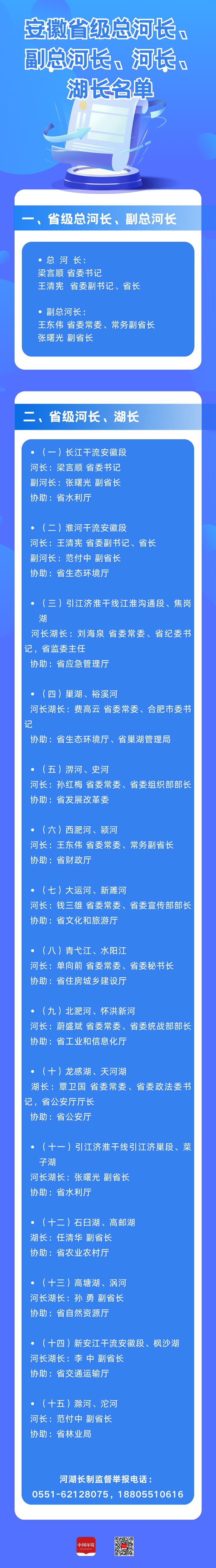 安徽省委書記、省長擔任省級總河長,政府網站上名單公布,公開監督舉報手機號